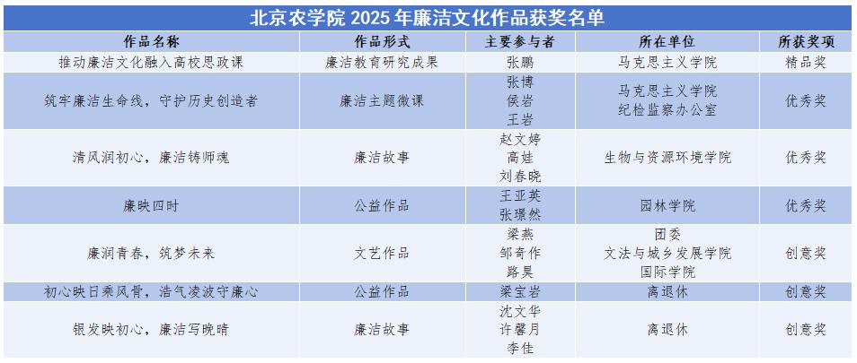 近日,北京市学校思想政治工作中心发布《关于2025年北京高校廉洁文化建设成果征集结果的公告》。在此次活动中,我院教师创作提交的两件廉洁文化作品脱颖而出,分别荣获精品奖和优秀奖各一项。