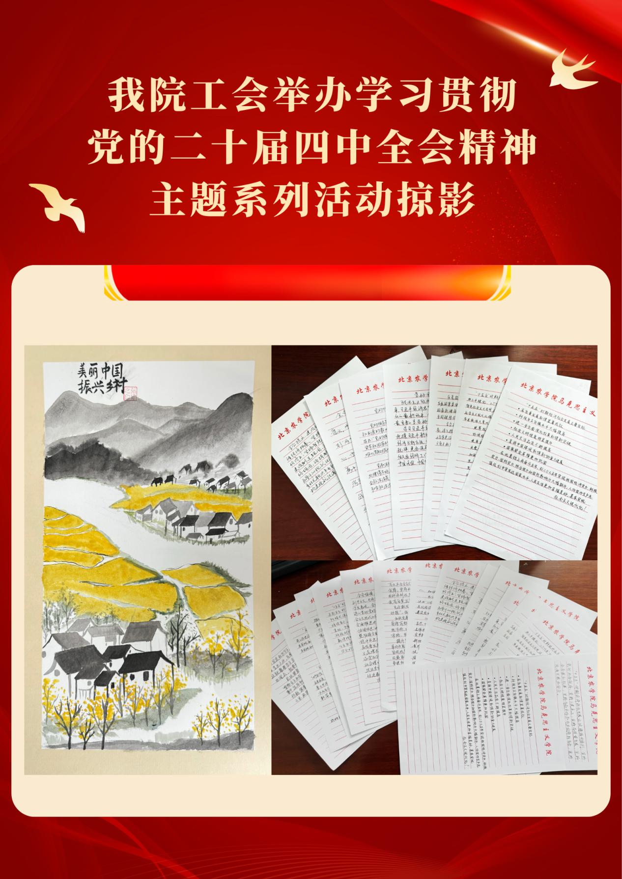 在“学全会精神 展书法风采”书法展示活动中,工会会员踊跃参与,共征集软笔、硬笔书法及绘画等作品二十余件。作品主题鲜明、形式多样,既有对全会公报原文的摘录书写,也有结合自身学习体会创作的艺术表达,生动体现了教职工对全会精神的深刻理解与情感认同。活动不仅为教职工提供了展示才艺、交流学习的平台,更通过笔墨艺术深化了理论学习效果,为学院文化建设增添了新的内涵。