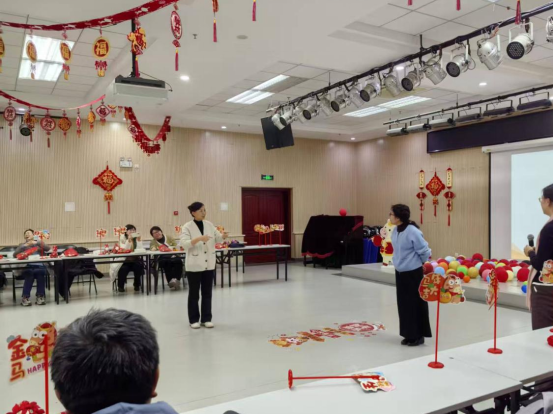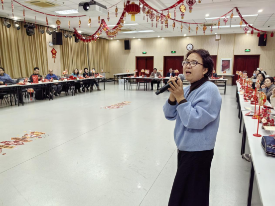 随着主持人张鹏、白凌子两位老师热情洋溢的开场,晚会节目精彩纷呈、形式丰富。韩宝禾小朋友表演的灯笼舞《过年啦》活泼可爱、年味十足;梁燕老师演唱的《夜空中最亮的星》深情动人,传递出理想与信念的力量;张子睿老师的单口相声《评书贯口——英雄赞》幽默风趣,引得现场笑声连连;王建利、熊学艺两位老师合唱的《精忠报国》气势恢宏,抒发了深厚的家国情怀;高英老师一曲《这世界那么多人》温暖真挚,唤起大家对相遇与缘分的珍惜;庄文老师和许颖老师带来的《七里香》旋律清新,为晚会增添了抒情色彩;青马班学员朱柯如的舞蹈《TikTok和桃花朵朵开》活力四射,展现了青马班学员的青春风采;魏爽老师演唱的《青柠》甜美动听,进一步营造了轻松欢快的现场氛围。