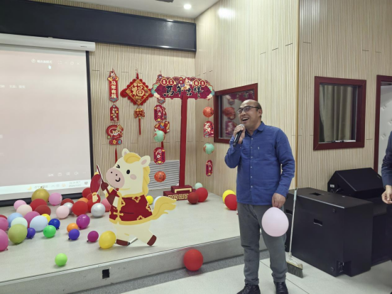 晚会还设置了趣味游戏与激动人心的抽奖环节。许颖老师主持的“你划我猜”互动游戏吸引了师生踊跃参与,大家在协作与欢笑中增进了情感交流,场面热烈融洽。