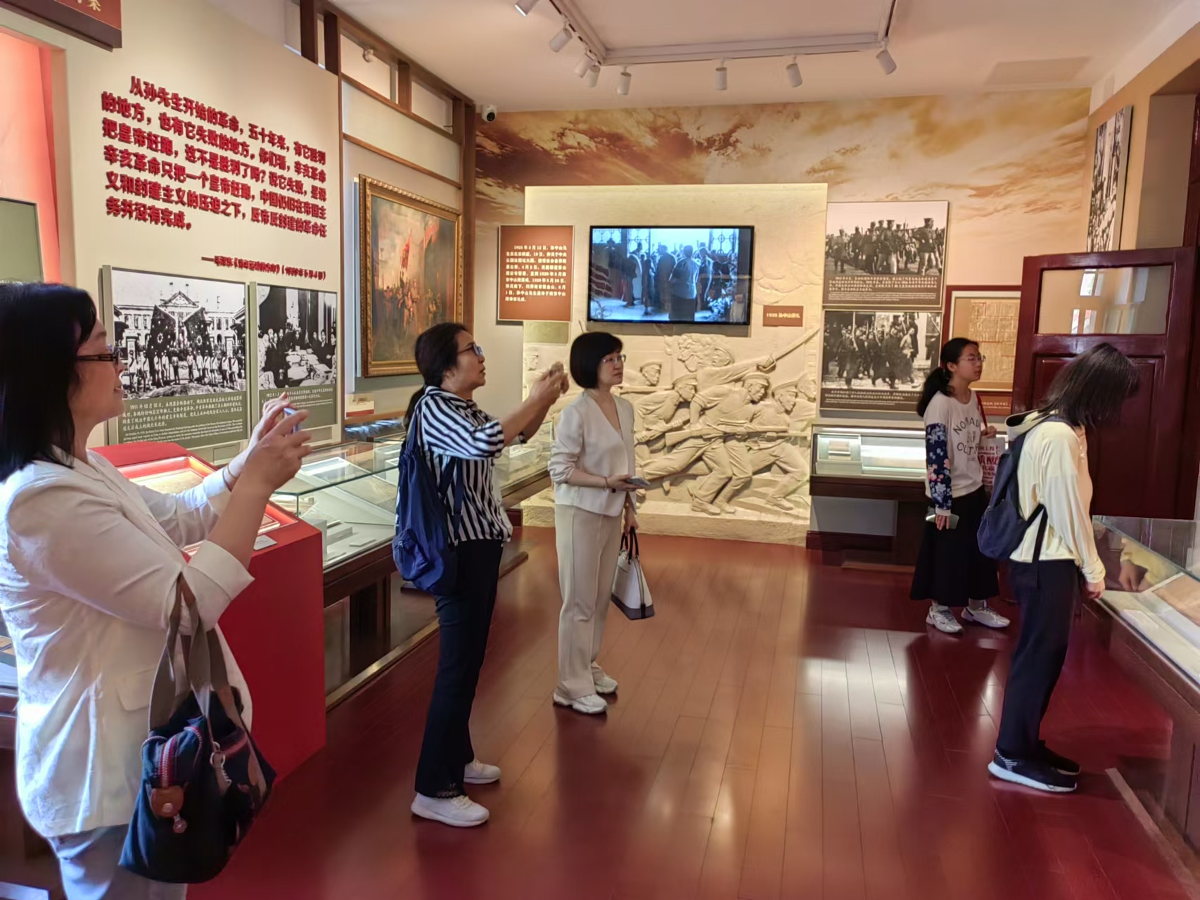 参观之前,思想政治教研室教师向同学们详细介绍了此次实践学习的目的、意义和北大红楼的重要历史作用。活动现场,教师们沿着历史脉络,组织学生认真参观红楼内的各个展室,通过现场文物陈列向同学们详细讲解了北大红楼的历史背景、建筑特色以及其在中国革命史上的地位和作用。通过认真观看文献文物、图片资料、艺术作品、多媒体影音资料,学生们深入了解新文化运动的历史背景、主要内容和深远影响,了解马克思主义在中国的传播发展情况、中国共产党的光辉奋斗历程和取得的辉煌成就,深刻感受到了革命先辈们在艰苦环境中坚持理想、追求真理的坚定信念和顽强精神。
