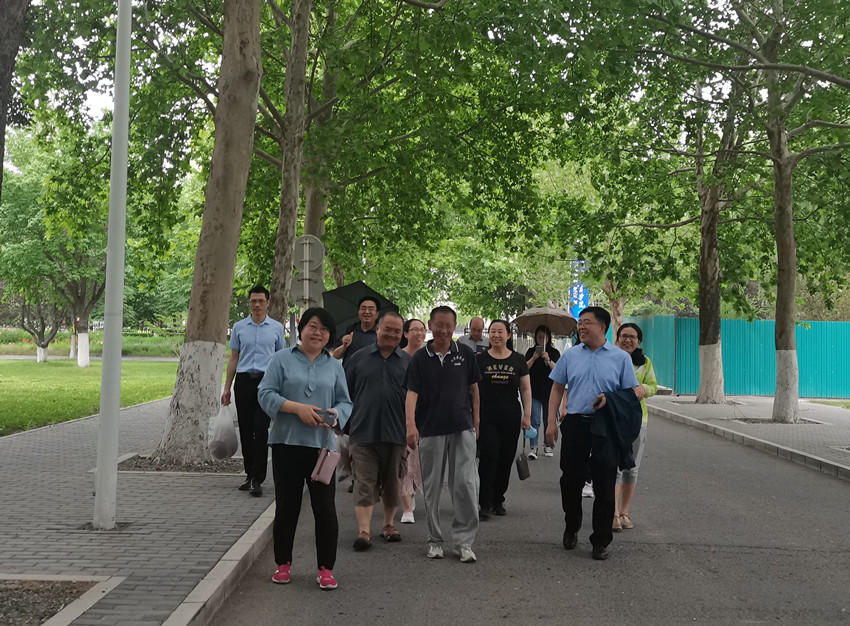 为庆祝建党一百周年,促进教职工身心健康,马院于6月16日中午举办了健康长走等系列体育活动。杨柳依依,小雨霏霏,当天马院老师在丝丝细雨中于校园前行,从学校正门出发,绕校园一圈,最后回到办公楼1号楼结束,并分三个地点照相打卡。