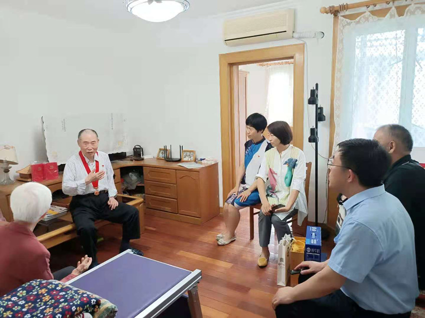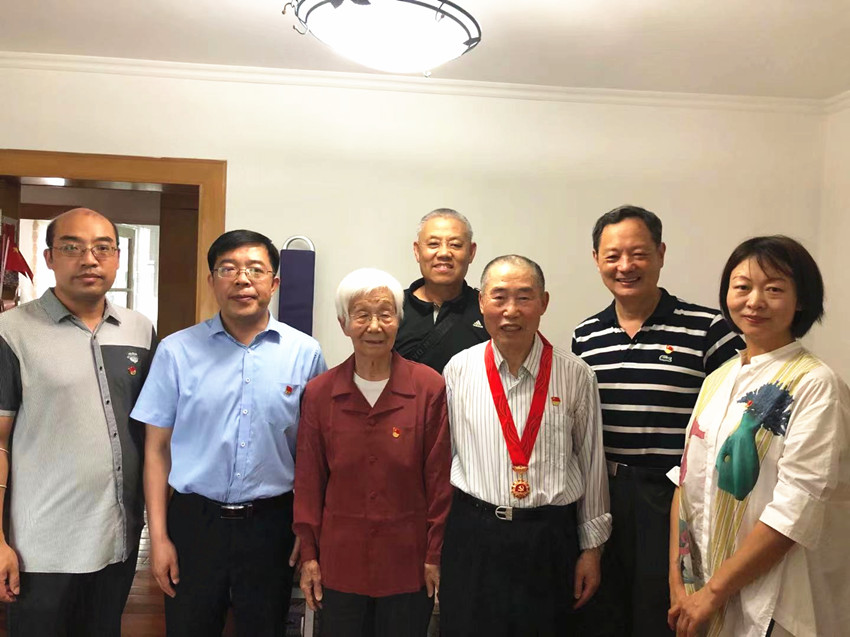 在党的百年华诞即将来临之际,根据学校党委的统一部署和安排,6月26日下午,tyc522cc太阳成集团、离退休工作处有关负责人、办公室同志以及老教协相关老师,来到我校原马列教研室主任、退休老党员李石生老师家中进行走访慰问,代表党组织为李石生同志颁发和佩戴“光荣在党50年”纪念章,亲切询问和深入了解李石生同志及其家属身体状况和生活状况,及时将党的问候和关怀送到老党员心中。李石生同志衷心感谢党组织的关怀和关心,表示将永远感党恩、听党话、跟党走,一如既往地为学校发展、为思政课教学改革献计出力。